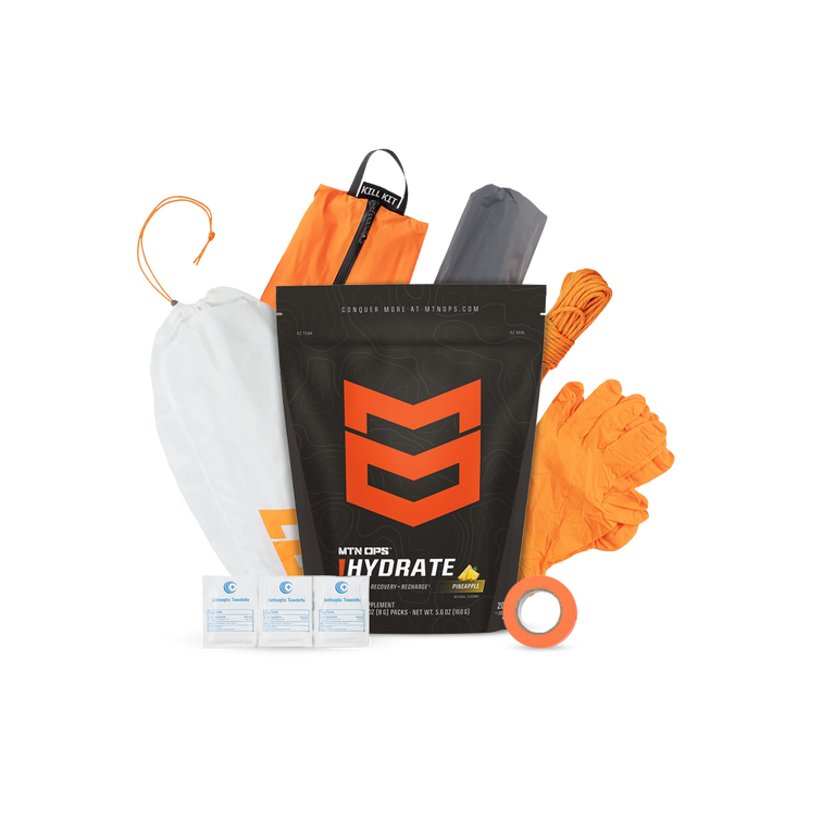 The Hunt Pack out Stack is your ultimate field companion, combining a premium field dress kit, durable game meat bags, and MTN OPS Hydrate for peak performance and hydration during your backcountry pack out. Everything you need to efficiently process and transport your game while staying fueled in the wild.